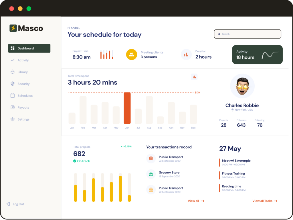 Masco is an intuitive, lightweight solution for tracking hours and projects that is easy to adopt and use every day, we’ve designed it to be super fast.